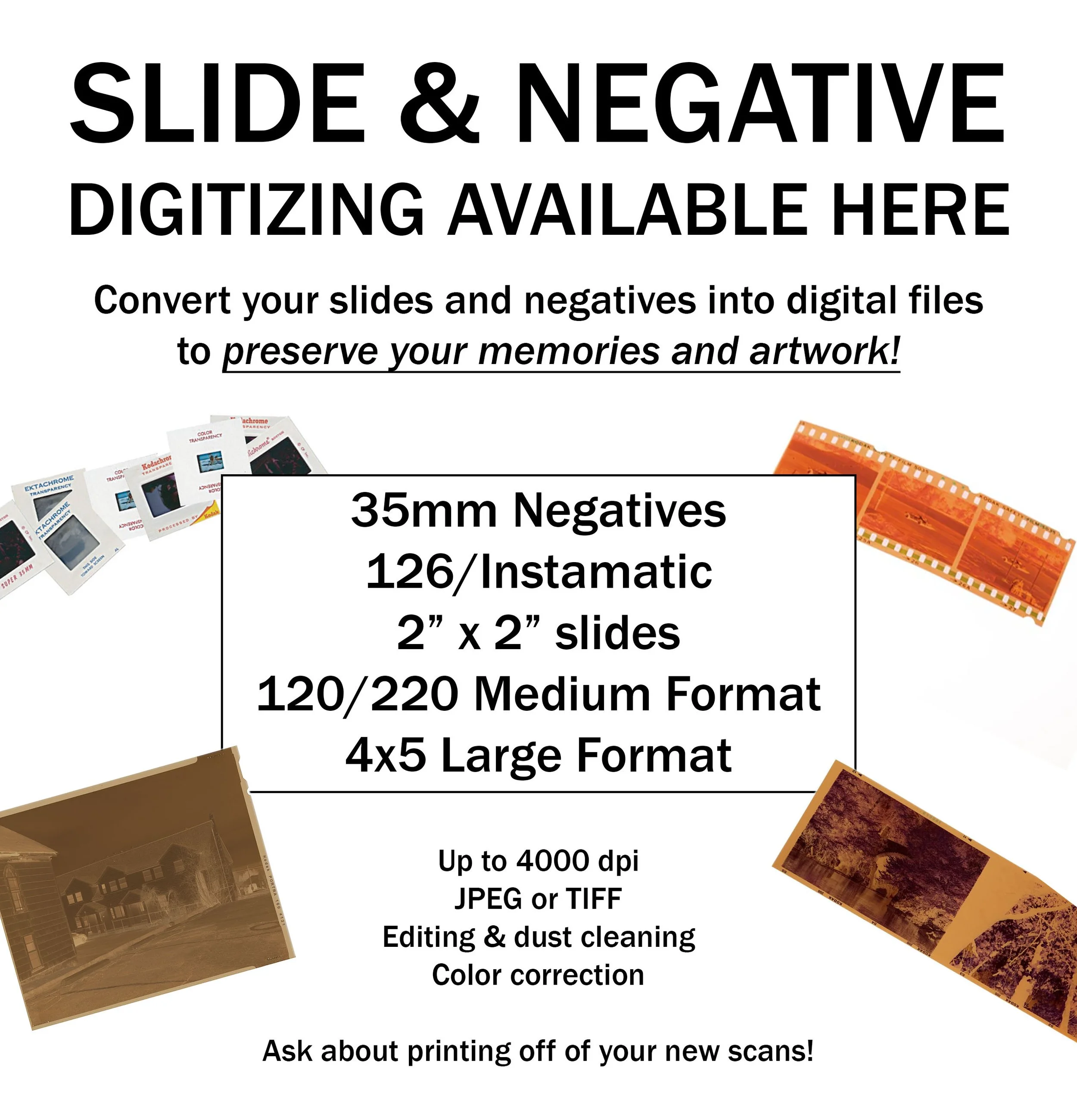 126/Instamatic negatives + slides - starting at $2/image
